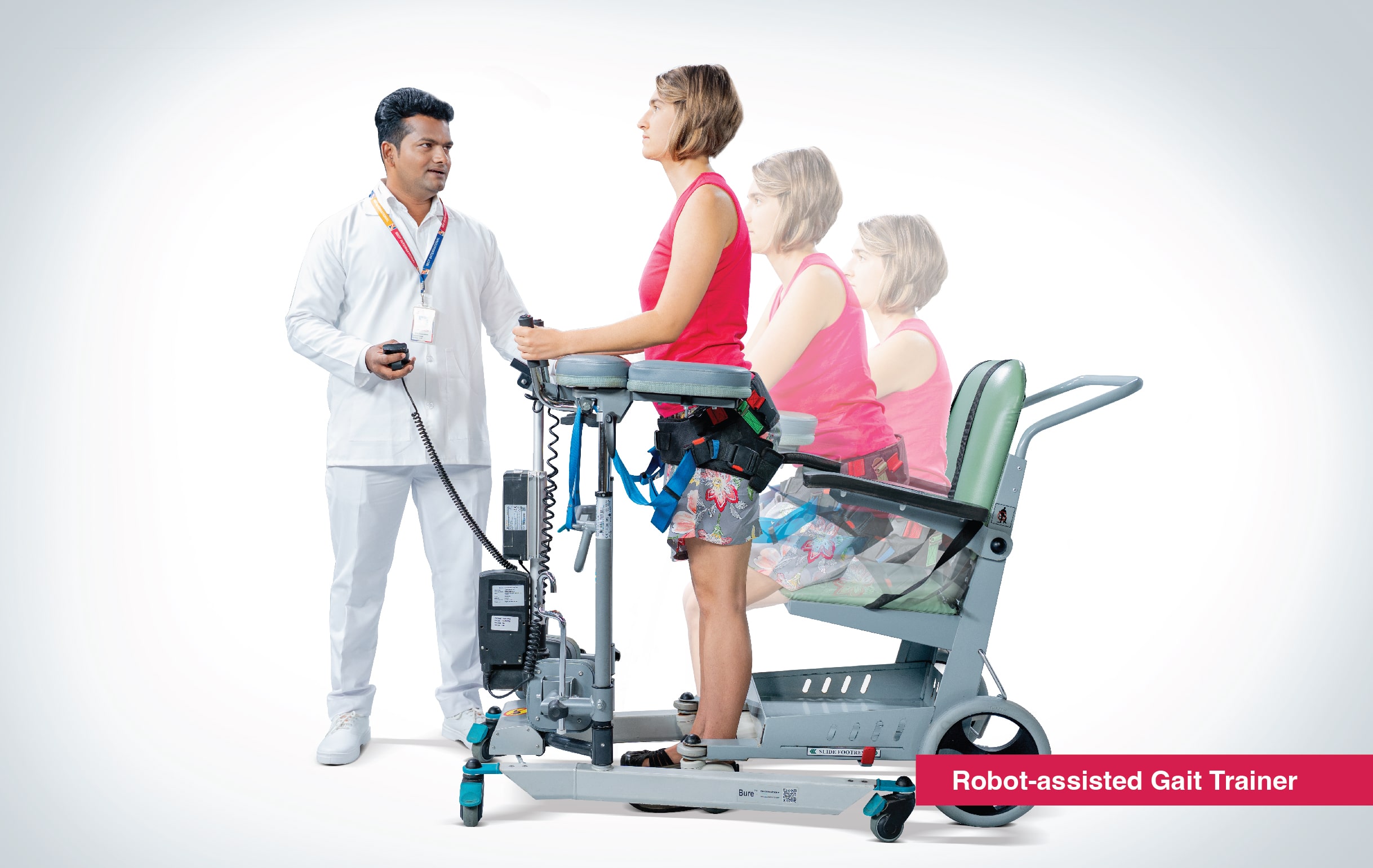 - Robot-assisted Gait Trainer – Enhances mobility, strength, and trunk control for those struggling with walking.