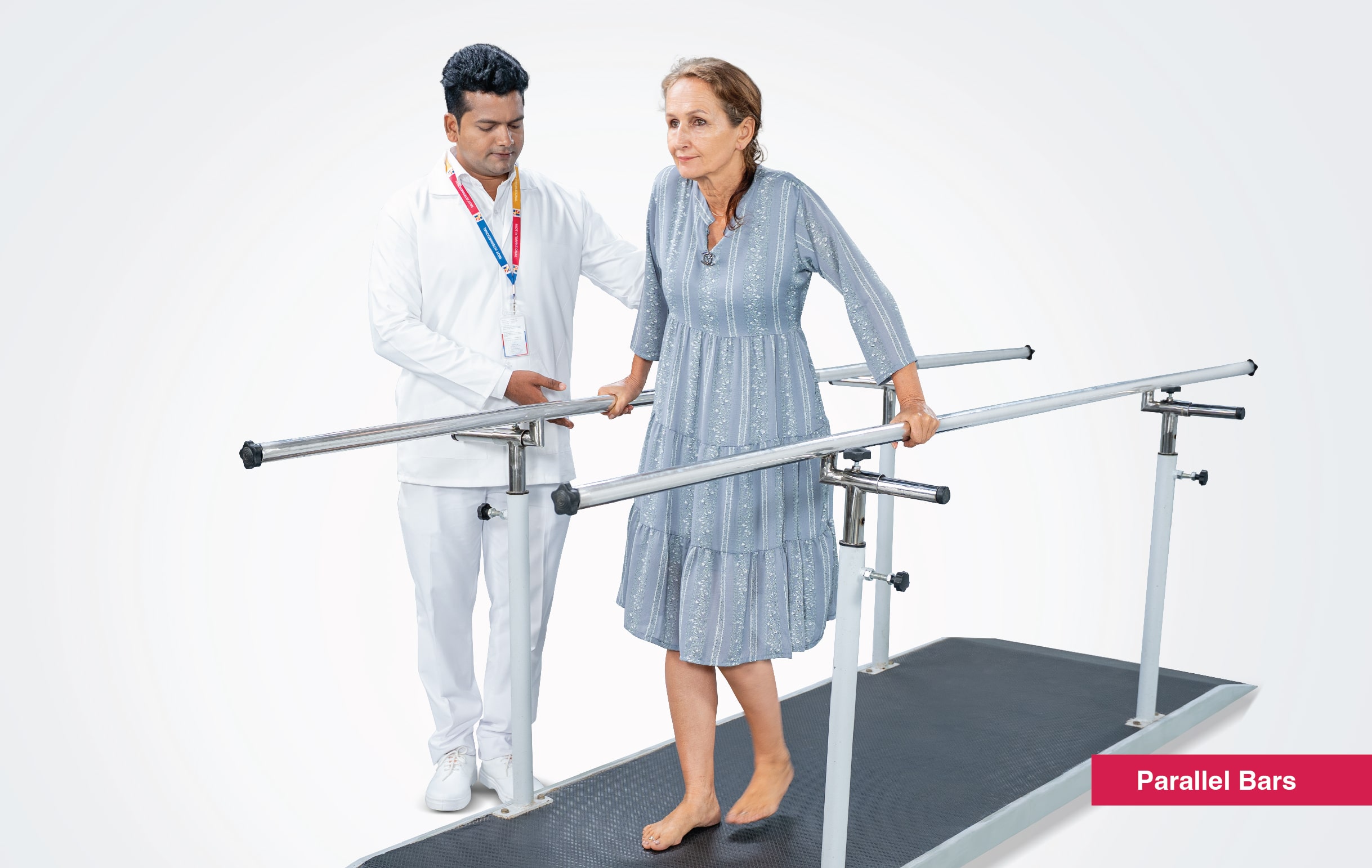 - Parallel bars – Enables activities of daily living and reduces fall risk.